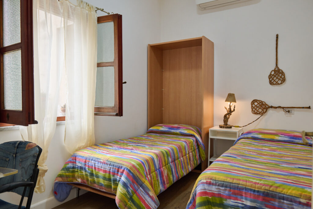 1 letto matrimoniale, 2 letti singoli, 1 letto a castello (fino a 6 persone)